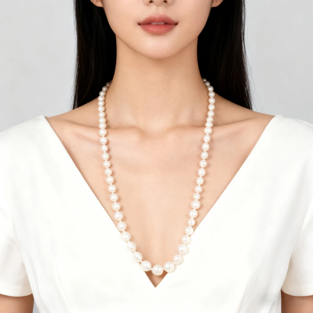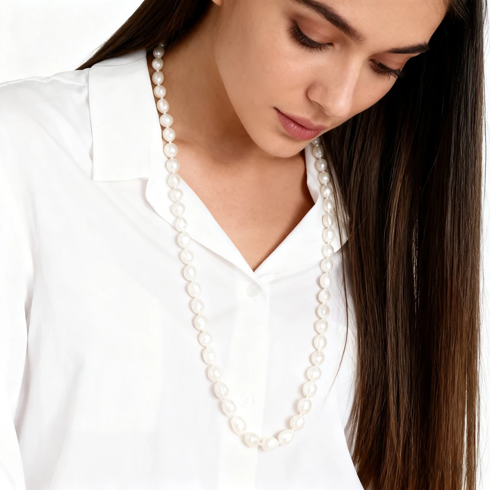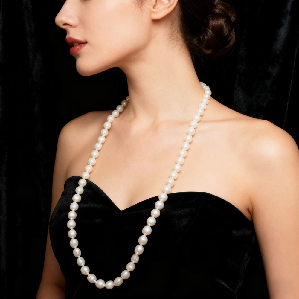 DAINASHI 8-9mm Baroque Natural Freshwater Pearl Necklaces for Women 86cm Long Sweater Necklaces Jewelry Gift Wholesale